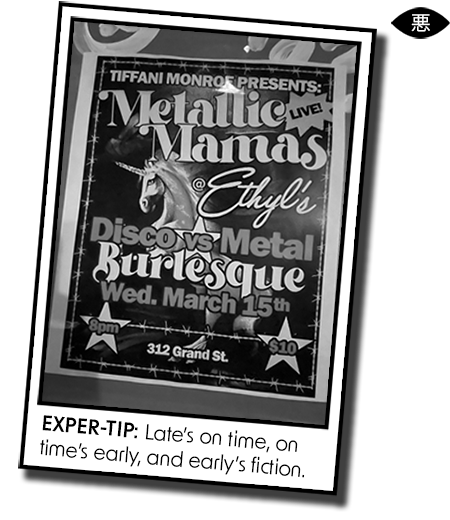 For me, at least. A heavy metal burlesque show was running downtown. Or uptown. Whatever you call “northeast” in Brooklyn. I know developers renamed everything around Target “Downtown Brooklyn,” but that’s a trick to get adults into a mall.