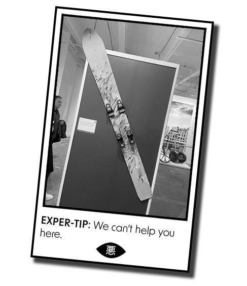 The museum was a genuine joy. I’m a tough comedic customer, and the exhibits delivered. A barrage of high-profile brain farts is easy to love. Take the monoski: